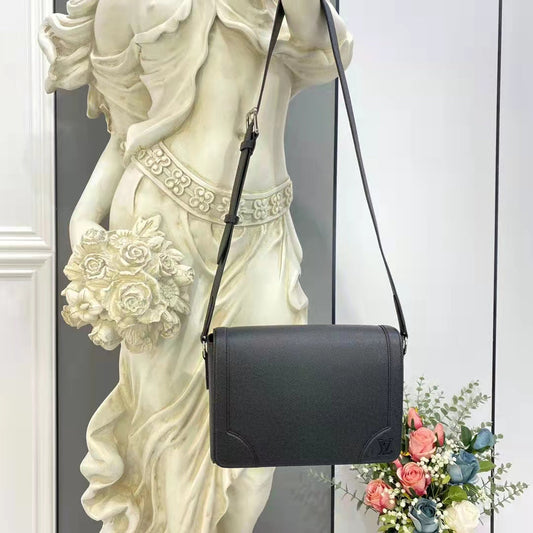 Louis Vuitton LV Unisex New Flap Messenger Black Taiga Cowhide Leather