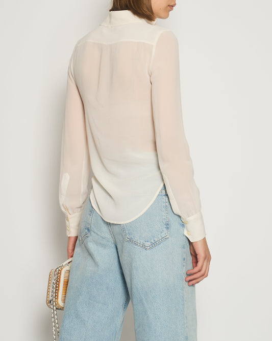 Saint Laurent Ivory Over-Sized Collar Button Down Shirt FR 34 (UK 6)