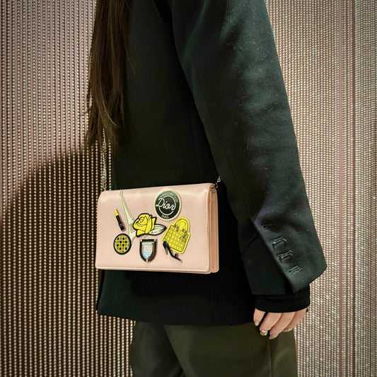 Christian Dior Diorama Patch Embellished Leather Wallet on Chain TWS