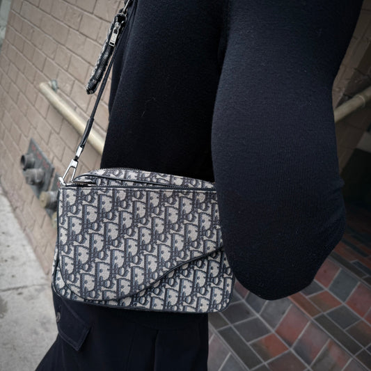 Christian Dior Paris Embroidery Blue Adjustable Shoulder Strap TWS