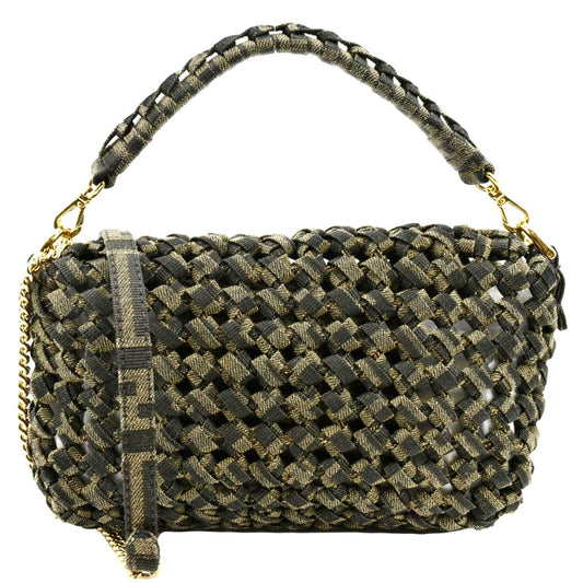 FENDI Mini Baguette Woven Jacquard Fabric Shoulder Bag Brown