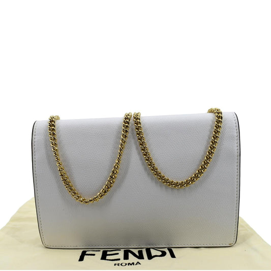 FENDI F Envelope Wallet on Chain Leather Crossbody Bag White