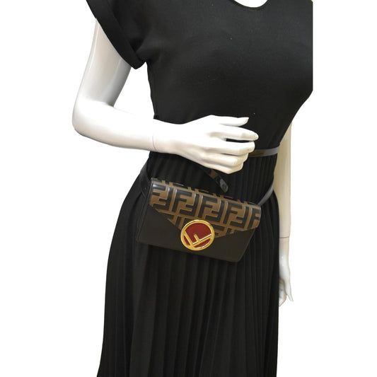FENDI Liberty F Vitello Leather Crossbody Belt Bag Black