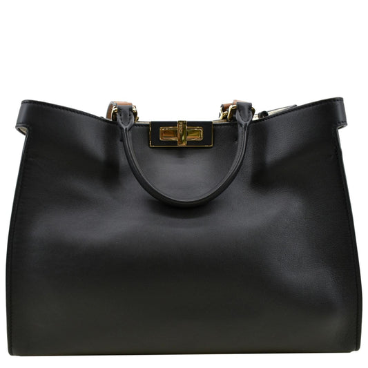 FENDI Peekaboo X-Lite Leather Tote Bag Black