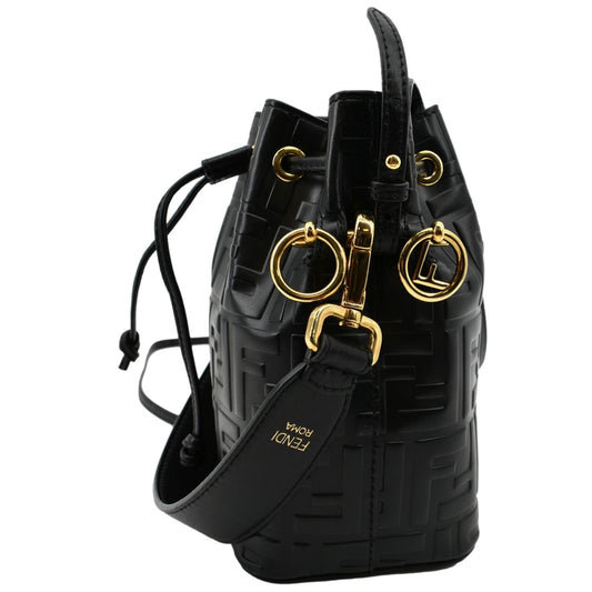 FENDI Mon Tresor Drawstring FF Leather Bucket Bag Black