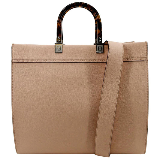 FENDI Sunshine Medium Full Grain Shopper Tote Beige