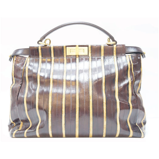 FENDI Peekaboo Striped Eel Skin Leather Shoulder Bag Brown
