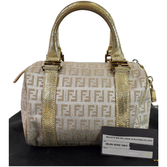 FENDI Selleria Zucca Canvas Leather Boston Bag Gold