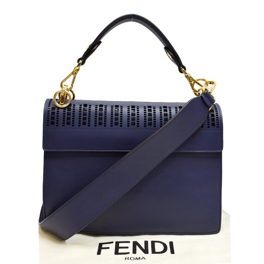 FENDI Small Kan I Perforated Leather Shoulder Bag Blue