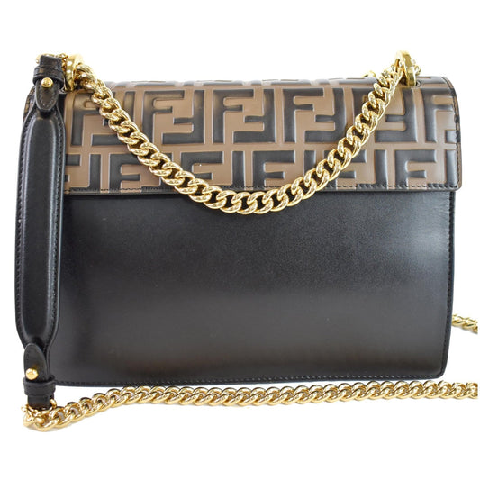 FENDI Kan I FF Logo Embossed Leather Crossbody Bag Brown