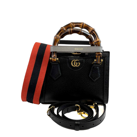 GUCCI Excellent Mini Diana NM Bamboo Handle Tote Black Crossbody Bag