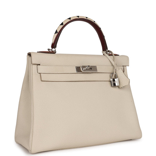 Pre-owned Hermes Kelly Retourne 32 Craie Au Gallop Togo Palladium Hardware