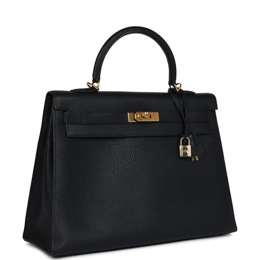 Hermes Kelly Retourne 28 Black Togo Gold Hardware