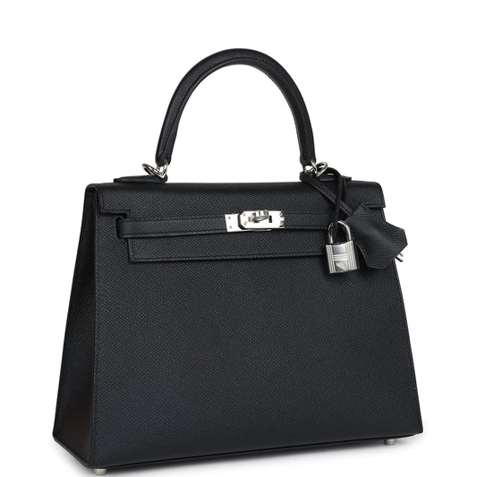 Hermes Kelly Sellier 25 Black Epsom Palladium Hardware