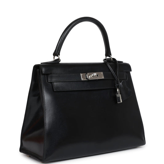 Vintage Hermes Kelly Sellier 28 Black Box Palladium Hardware