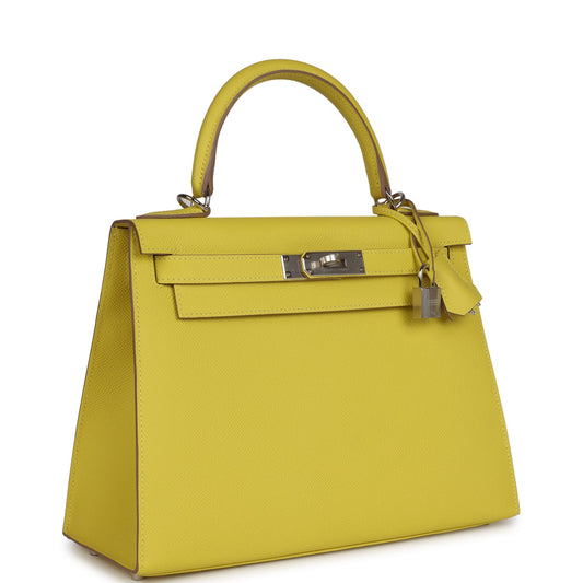 Hermes Kelly Sellier 20 Jaune Citron Chevre Palladium Hardware