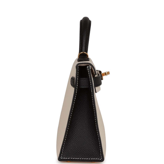 Hermes Special Order (HSS) Kelly 20 Sellier Craie and Black Epsom Gold Hardware