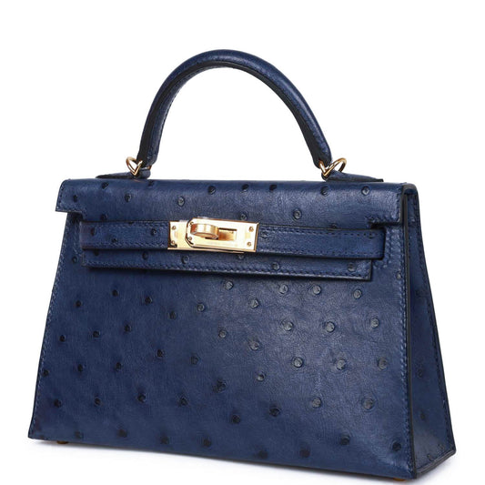 Hermes Kelly 20 Bleu Saphir Ostrich Gold Hardware