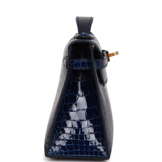 Hermes Kelly Pochette Bleu Saphir Shiny Alligator Gold Hardware