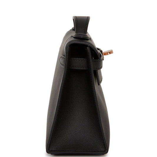 Hermes Kelly Pochette Black Swift Rose Gold Hardware