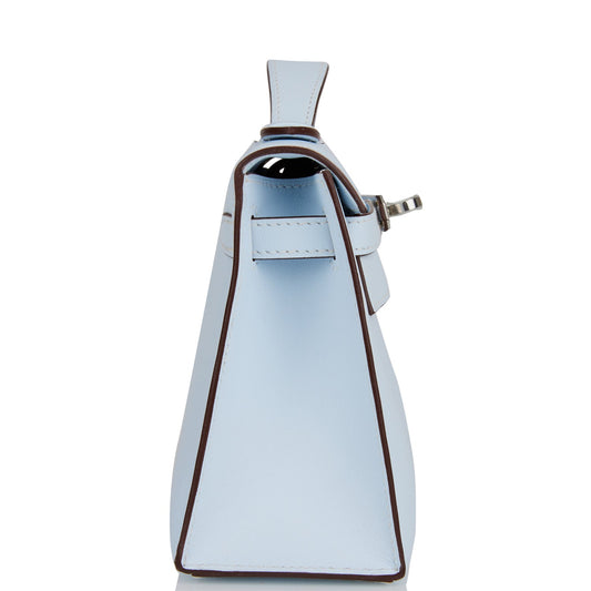 Hermes Kelly Pochette Bleu Brume Swift Palladium Hardware