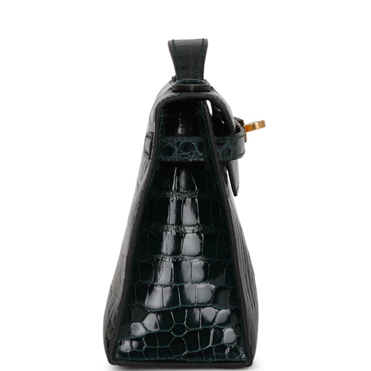 Hermes Kelly Pochette Vert Cypress Shiny Alligator Gold Hardware