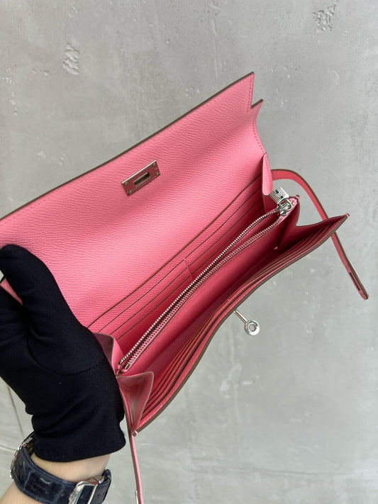 Pre-owned Hermes Kelly Long Wallet 1Q Rose Confetti Epsom Silver Hardware, 2016, w/ box