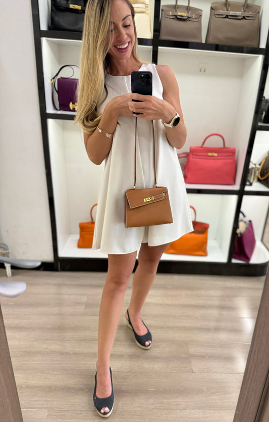 Pre-owned Hermes Mini Kelly, 2nd Generation, Craie & Etoupe Epsom, Golden hw, 2022, w/ box, receipt