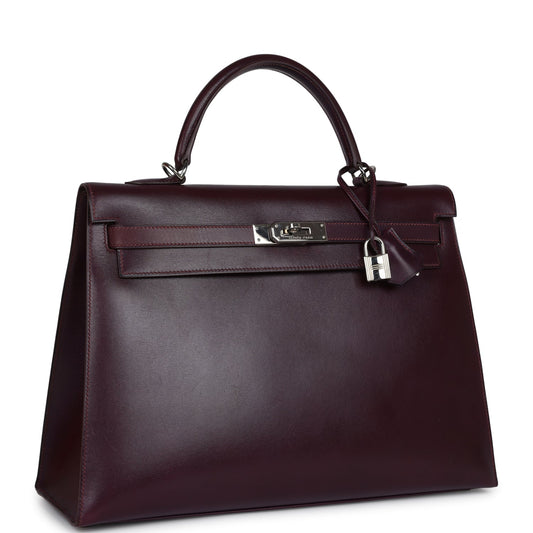 Vintage Hermes Kelly Sellier 35 Raisin Box Palladium Hardware