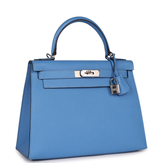 Hermes Special Order (HSS) Kelly Sellier 28 Bleu Glacier Verso Epsom Brushed Palladium Hardware