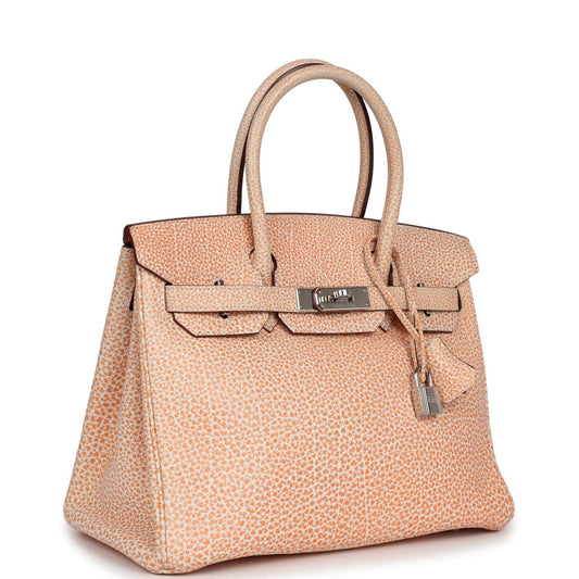 Vintage Hermes Birkin 30 Orange Dalmatian Buffalo Palladium Hardware