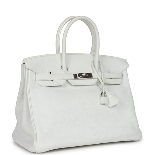 Pre-owned Hermes Birkin 35 White Clemence Palladium Hardware
