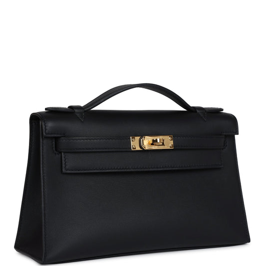 Hermes Kelly Pochette Black Swift Gold Hardware