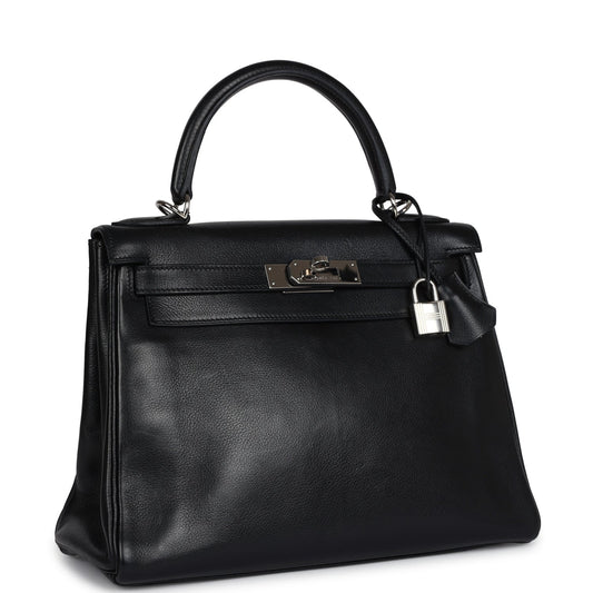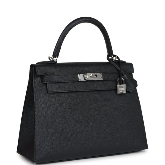 Hermes Kelly Sellier 32 Black Epsom Palladium Hardware
