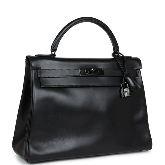 Pre-owned Hermes Rare Kelly Retourne 32 SO BLACK Box Black Hardware