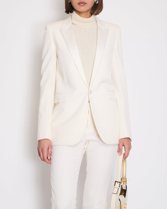 Saint Laurent Cream Suit Jacket and Trouser Set With Silk Lapel Detail Size FR 36 (UK 8)