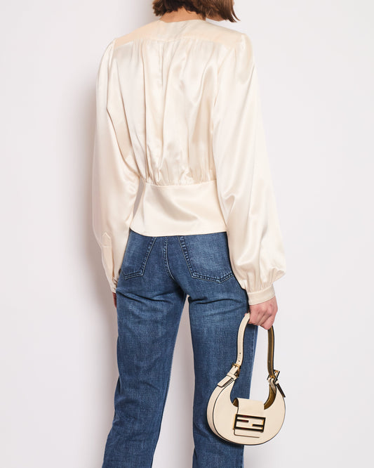 Saint Laurent Cream Silk Long Sleeve Blouse Size FR 42 (UK 14)