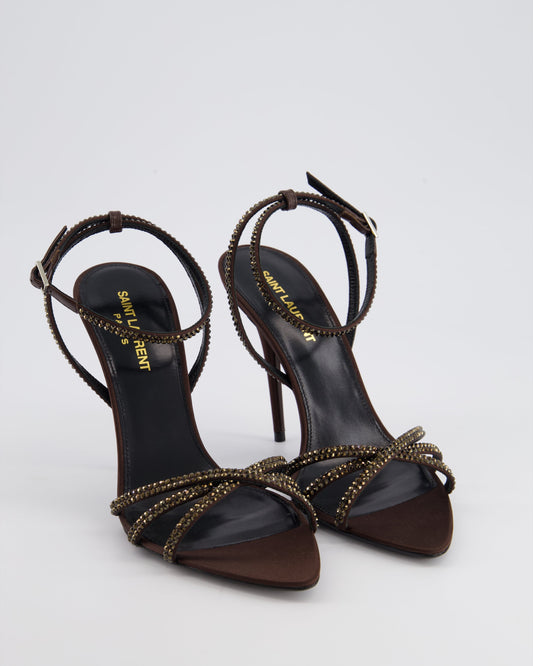 Saint Laurent Chocolate Brown Ava 105mm Embellished Sandals Size EU 38.5 RRP £1150