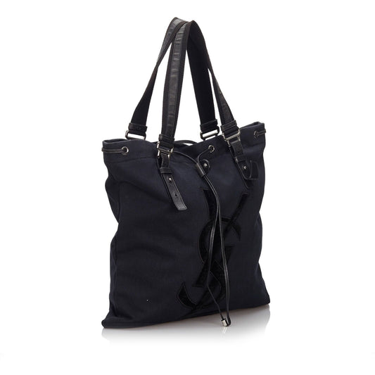 Pre-Loved YSL Black Cotton Fabric Kahala Tote Bag France