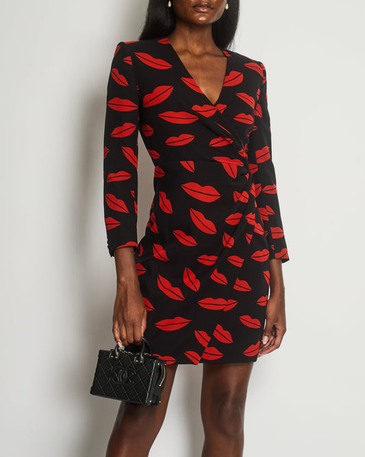 *RUNWAY* Saint Laurent Black Silk Lip Print Midi Dress Size 38 (UK 10)