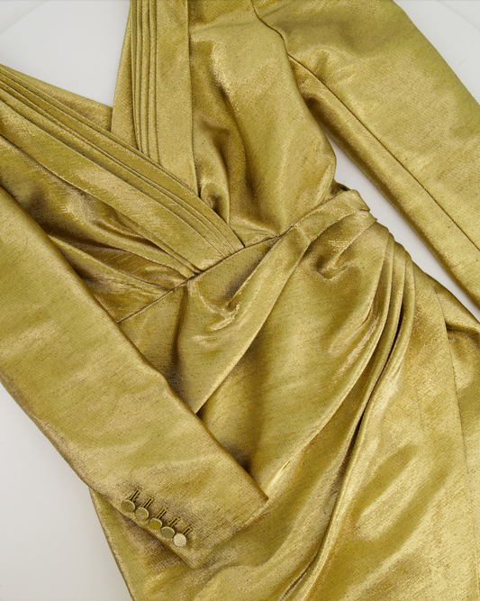 *RUNWAY* Saint Laurent Gold Embellished Long-Sleeve Mini Dress Size FR 38 (UK 10)