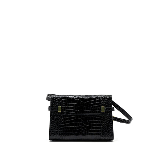 Saint Laurent/YSL Sunset Bag Croc-Embossed Calfskin Black SHW