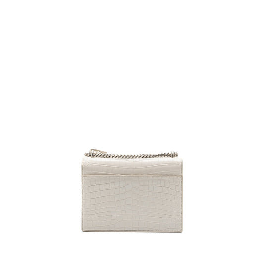 Saint Laurent/YSL Sunset Bag Crocodile embossed White SHW
