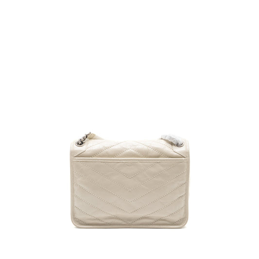 Saint Laurent/YSL Niki Baby Flap Bag Calfskin White SHW