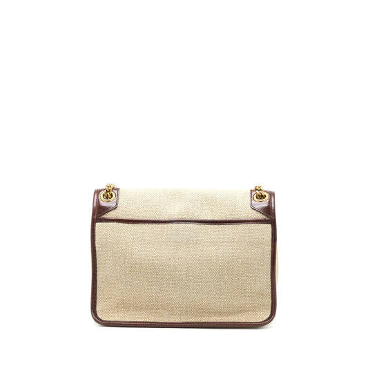Saint Laurent Medium Niki Bag Trimmed Linen Canvas Brown