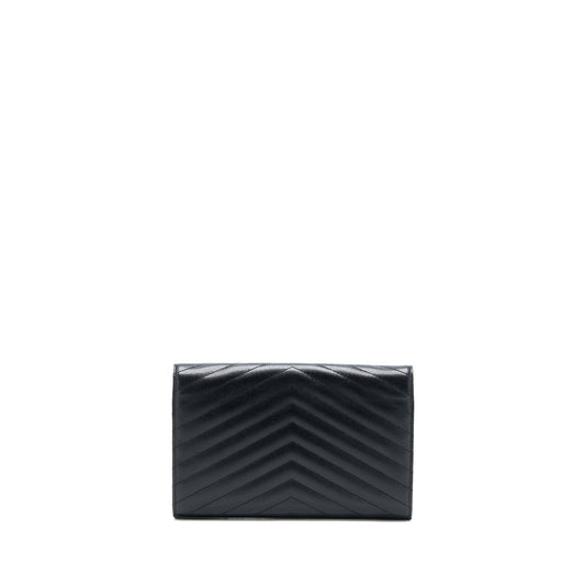 Saint Laurent/YSL Cassandra Matelasse Envelope Chain Wallet Grained Calfskin Black GHW