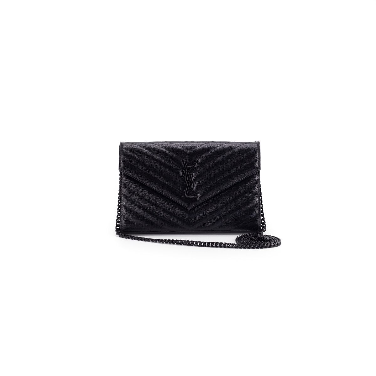 SAINT LAURENT MONOGRAM CHAIN WALLET IN GRAIN DE POUDRE EMBOSSED LEATHER BLACK