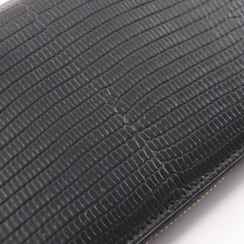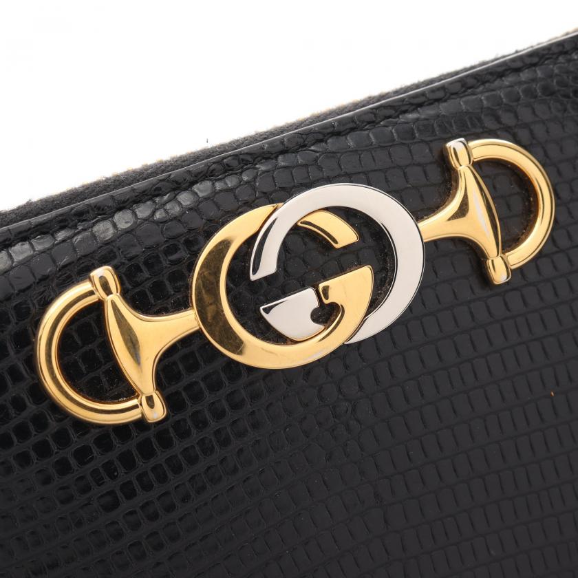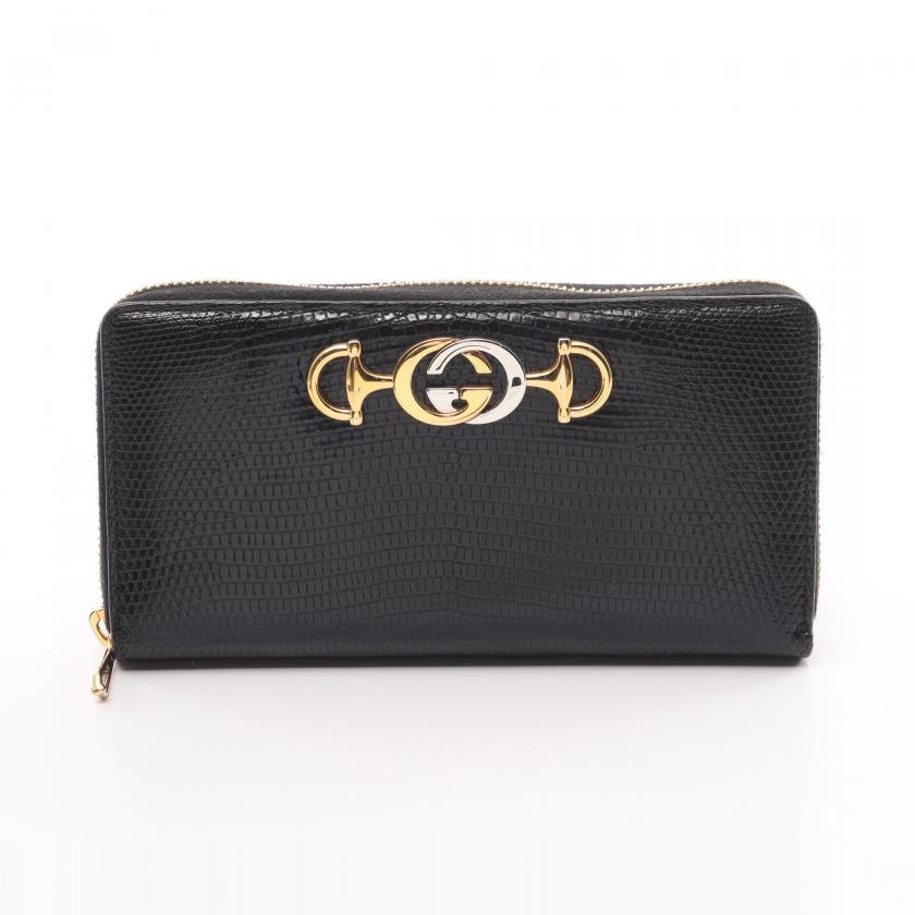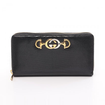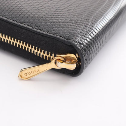 Gucci Zumi Round Zipper Long Wallet Leather Black Lizard Embossed 880084