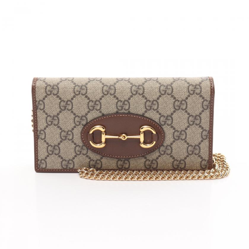 Gucci Horsebit 1955 Chain Wallet Pvc Leather Beige Brown 880364