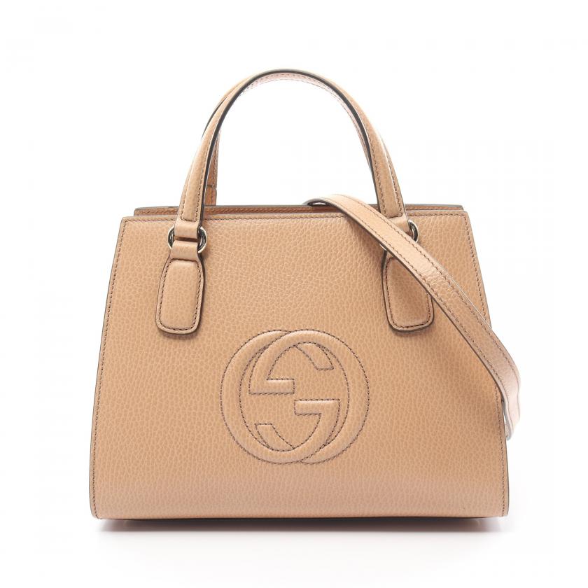 Gucci Soho Interlocking G Handbag Leather Beige 2way 880371